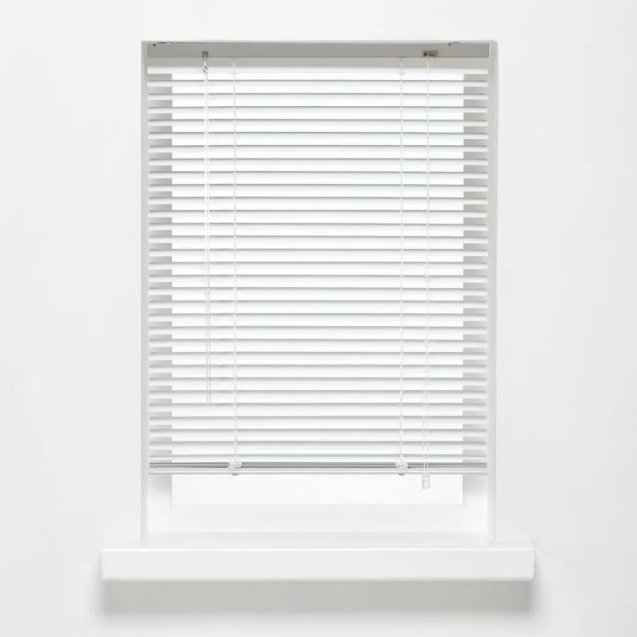 Jaloezie met witte aluminium stroken van 25 mm. Ideaal voor het regelen van licht en privacy. Eenvoudig zelf te monteren. Met vochtige doek reinigen. Het bedieningskoord zit aan de rechterkant, de tuimelstaaf aan de linkerkant. Inhoud verpakking: schroeven, pluggen, montagesteunen, kindveiligheidsclip, montagehandleiding en inkortinstructie.