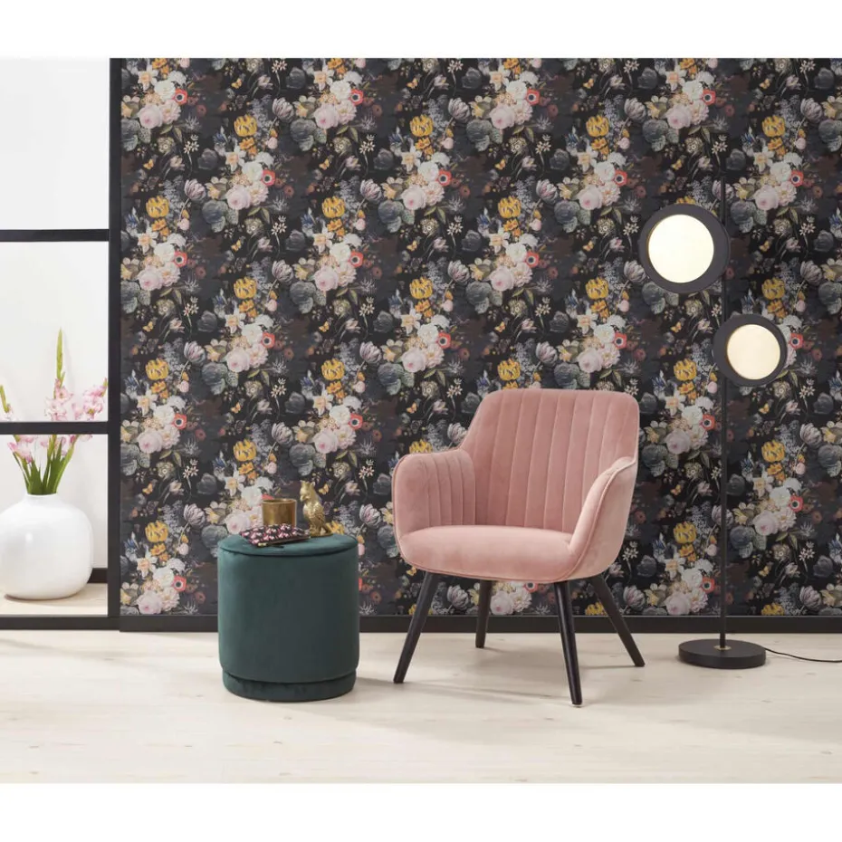 Vliesbehang met sfeervolle bloemenprint. Licht afwasbaar. Voorzien van het FSC-keurmerk. 10 meter per rol.
