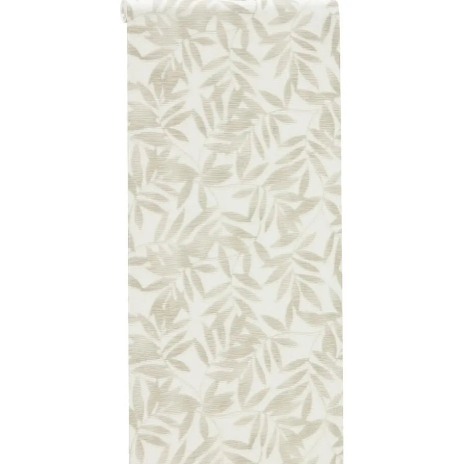 Vliesbehang zandkleurig met blad patroon. Voorzien van het FSC-keurmerk. Wand insmeren om te behangen. 10 meter per rol. 53 cm breed.