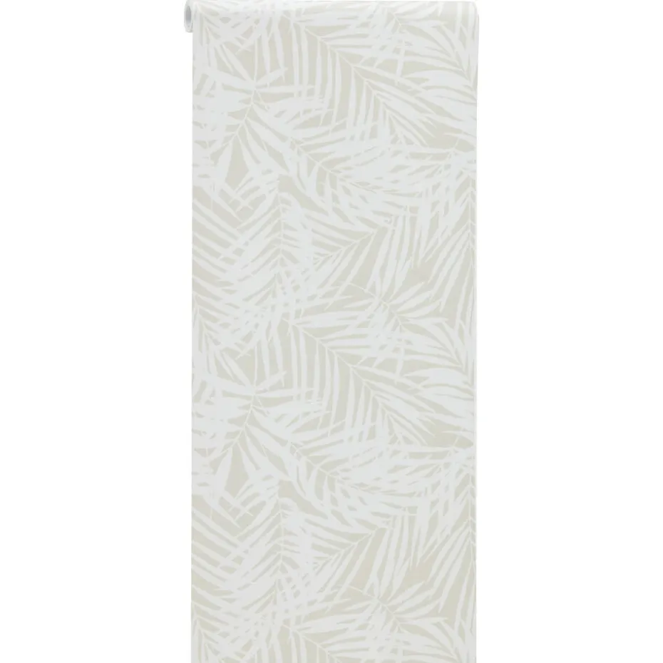 Vliesbehang Micha in sfeervolle zand kleur met bladeren patroon.Het behang is voorzien van het FSC-keurmerk. Plakken met Perfax Pink. 10 meter per rol.
