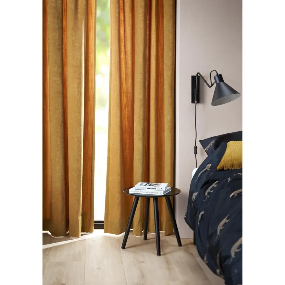 Ronde bijzettafel met zwarte houtlook. 40x40x41 cm (lxbxh).