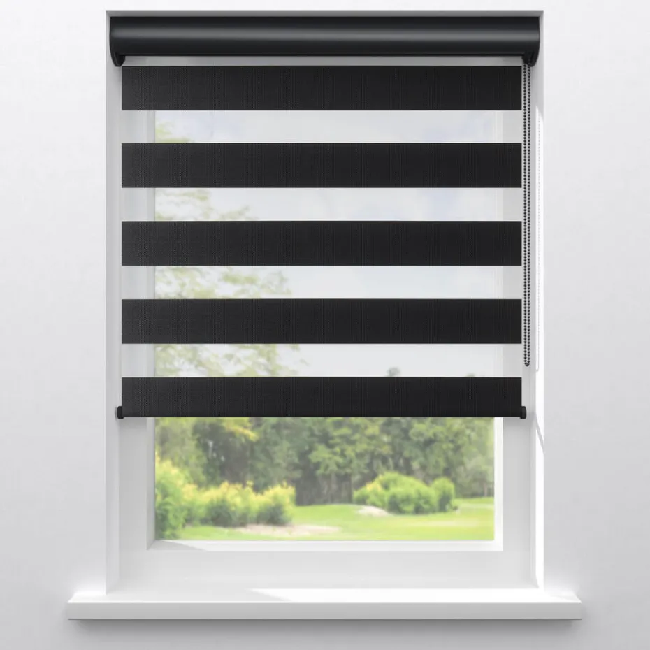 Duo rolgordijn Fedde is een rolgordijn in de kleur zwart. Hierbij worden transparante en zwarte ondoorzichtige stroken afgewisseld. Zo kun je gemakkelijk de lichtinval regelen, en meer privacy creëren in jouw woonkamer of keuken. Dankzij de stofeigenschappen van polyester is het rolgordijn makkelijk schoon te maken met een vochtige doek.