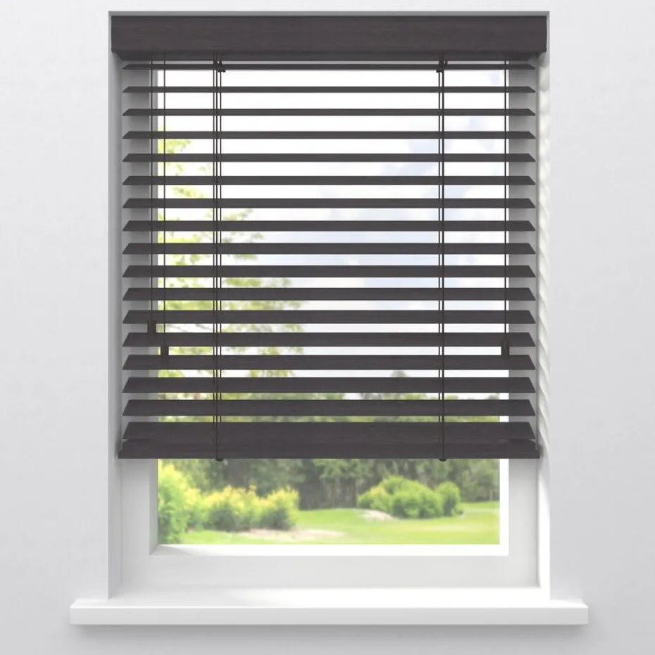 Houten jaloezie grijs met natuurlijke houtnerven en een authentieke luxe uitstraling. 100% hout. De brede lamellen van 50 mm zorgen voor veel lichtinval en bieden veel privacy wanneer je deze sluit. Op maat te maken en volledig naar wens samen te stellen. Bepaal zelf de bedieningszijde en kies uit diverse accessoires en uitvoeringen. Keuze uit een bijpassend ladderkoord, 48 verschillende ladderbanden en een koordhanger van hout, rvs of zwart metaal.