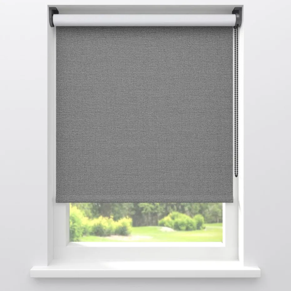 Verduisterend rolgordijn grijs/wit gemêleerd. De witte achterzijde zorgt voor volledige verduistering. Ideaal voor slaapkamers maar ook te gebruiken voor keukens en andere woonruimtes. Op maat te maken en volledig naar wens samen te stellen met een ruime keuze uit accessoires en uitvoeringen. Elektrische bediening en zijgeleiding is mogelijk. Ook geschikt voor draaikiepramen. Eenvoudig met een vochtige doek af te nemen.