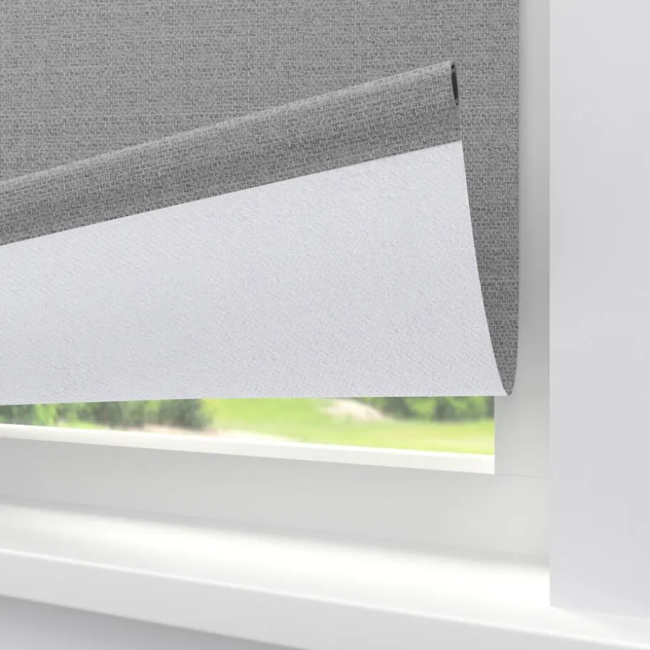 Verduisterend rolgordijn lichtgrijs met een grovere structuur. De witte achterzijde zorgt voor volledige verduistering. Ideaal voor slaapkamers maar ook te gebruiken voor keukens en andere woonruimtes. Op maat te maken en volledig naar wens samen te stellen met een ruime keuze uit accessoires en uitvoeringen. Elektrische bediening en zijgeleiding is mogelijk. Ook geschikt voor draaikiepramen. Eenvoudig met een vochtige doek af te nemen.