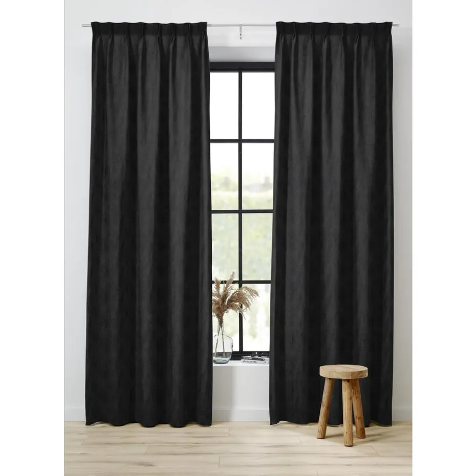 Verduisterende gordijnstof grijs met structuurprint. Stevig, vormvast en slijtvast. Deze dim-out gordijnstof is tot 95% verduisterend. De stof laat weinig daglicht door, maar houdt niet het volledige zonlicht tegen. 145 cm breed.