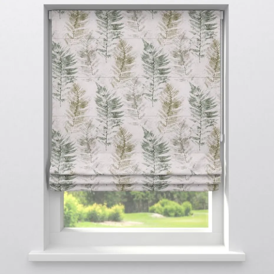 Gordijn Johanne in een groene kleur. Dit gordijn heeft een print van verschillende bladeren. De stof is gemaakt van 100% polyester. Het patroonhoogte is 72 centimeter. 145 centimeter breed.