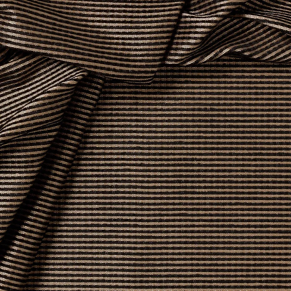 Gordijnstof van luxe materiaal met een zwarte en gouden kleur. Zacht en sterk. 140 cm breed.
