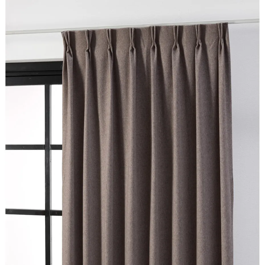 Gordijn Olaf bruin bestaat uit gerecyled polyester, polyester en katoen. Door het gebruik van deze materialen is deze stof kleurvast en zacht.