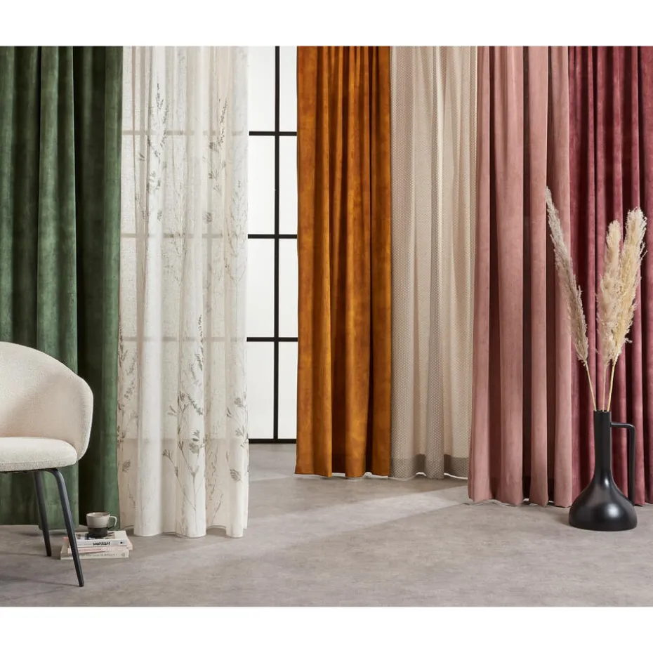 Lichtdoorlatende gordijnstof Rosy Oker heeft een subtiele glans. Het zachte velours zorgt voor een warme uitstraling. Rosy is gemaakt van 100% polyester en de vleug valt omlaag van de stof. Stevig, vormvast en soepel. Dit velours gordijn is zeer geschikt om jouw huis te isoleren, vooral in de koude wintermaanden. Daarnaast heeft velours ook als functie dat de kamer waar je deze gordijnen ophangt, veel minder hol klinkt. 141 cm breed.