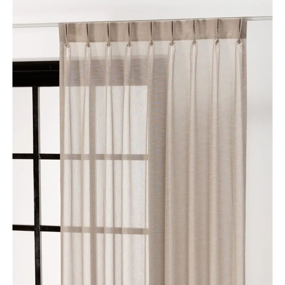 Behoefte aan meer licht maar heb je wel de behoefte aan de nodige privacy? Kies dan voor een inbetween in de woonkamer en combineer deze met een mooi verduisterend overgordijn. Inbetween Bram Zand is een transparante gordijnstof van 100% polyester. Deze gordijnstof heeft een nonchalante, natuurlijke uitstraling met een subtiele glans. Prachtig te combineren in een waveplooi. Zeer sterk en slijtvast. Kreukgevoelig. 300 cm hoog.