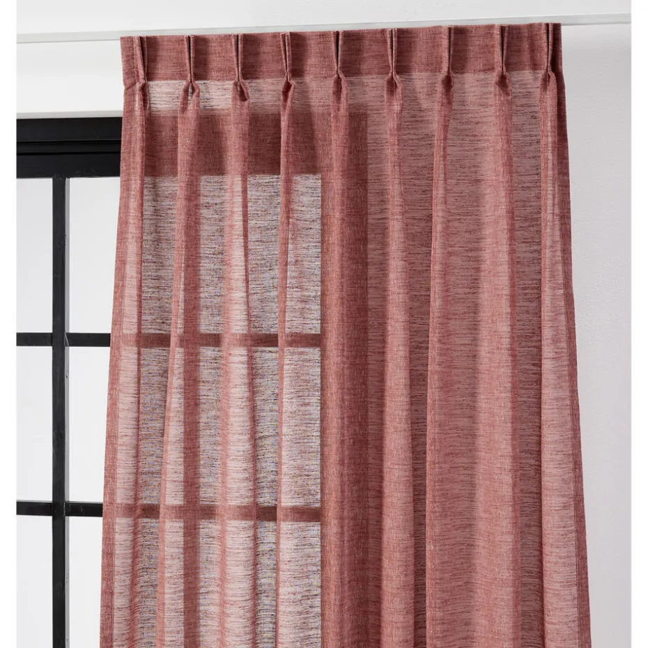 Inbetween Milou Rood is een transparante gordijnstof met een kleurmelange, gemaakt van 85% polyester en 15% linnen. Door de mix van materialen heeft Milou een natuurlijke uitstraling in een prachtige linnenlook. Wil je jouw huis meer sfeer geven met gordijnen maar wel je privacy behouden? Dat kan gemakkelijk met transparante gordijnen. Deze gordijnen bieden een ideale oplossing tegen inkijk bij ieder raam. Het filtert namelijk licht van buiten af, waardoor je nog wel naar buiten kunt kijken, maar het zicht naar binnen wordt beperkt. 300 cm hoog.