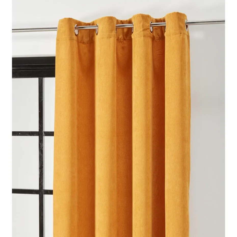 Kant en klaar gordijn met oker kleur. Soepelvallend, stevig en kreukherstellend. 140×265 cm (bxh).
