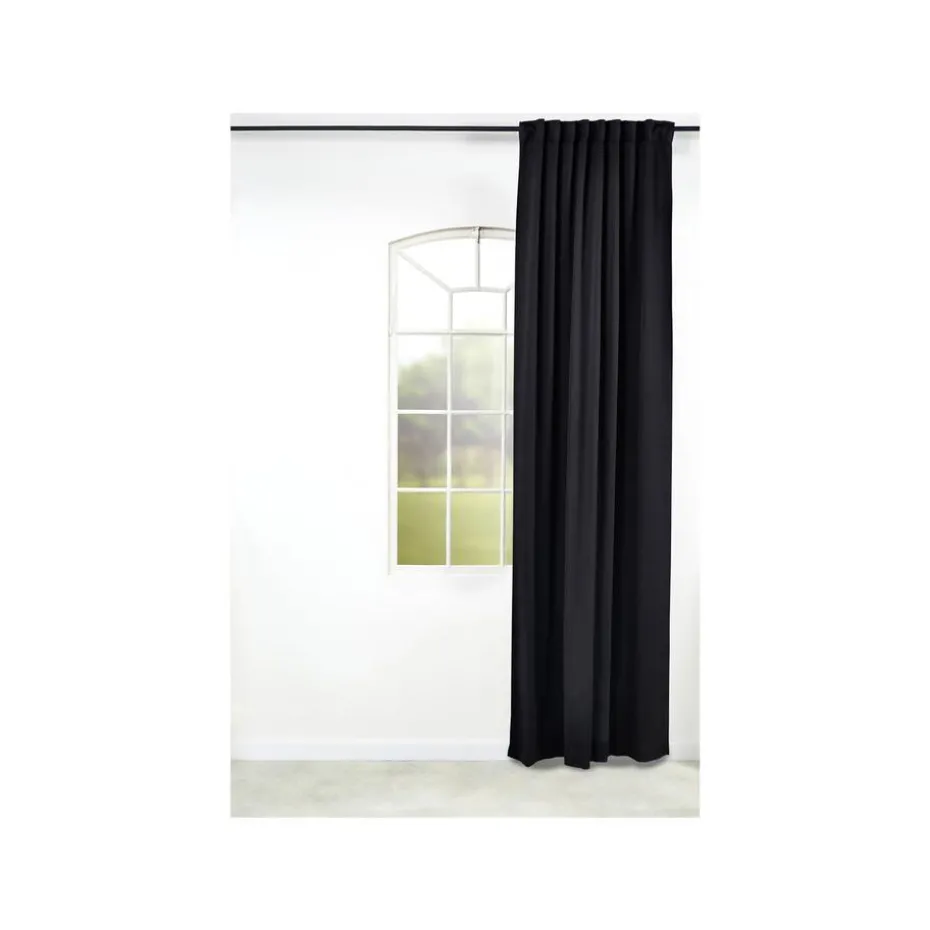 Kant en klaar gordijn. Zwart. Breedte 140 cm en hoogte 260 cm. De stof is verduisterend.