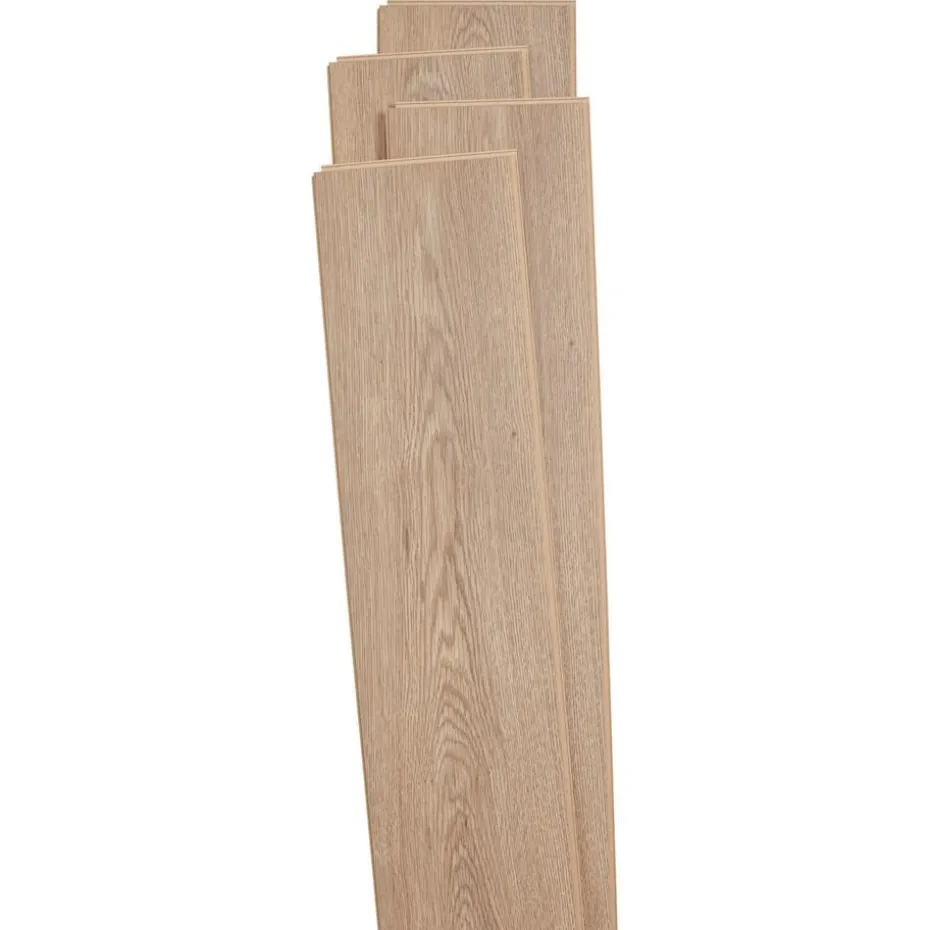 Laminaat grijseiken met een dikte van 7 mm. Geschikt voor zeer intensief woongebruik.