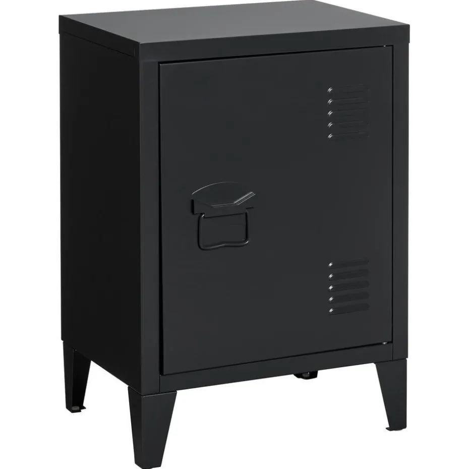 Stoere lockerkast van zwart metaal. 40x30x57 cm (lxbxh).