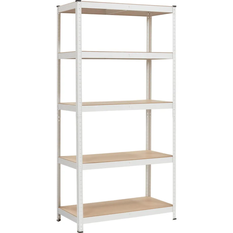 Opbergrek gemaakt van 100% metaal en MDF planken. Dit opbergrek heeft de kleur wit. 90x45x180 centimeter. Het max. draagvermogen per plank is 175kg.