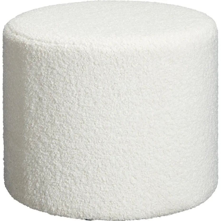 Moderne poef Padule in een crème kleur. Deze poef is gemaakt van een bouclé stof. ø50×41 centimeter.