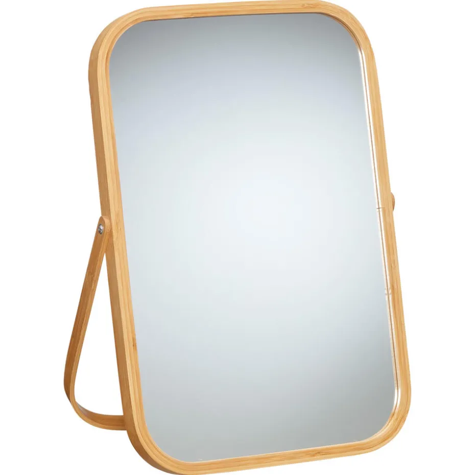 De Barga tafelspiegel is een moderne make-up spiegel met een naturel frame en een kleine standaard zodat je de spiegel gemakkelijk neer kuntzetten. Met afmetingen van 25,5×41 cm (lxh) is deze spiegel perfect voor jouw dagelijkse routines.Voeg glamour toe aan jouw make-uptafel of badkamer met deze stijlvolle en functionele spiegel.