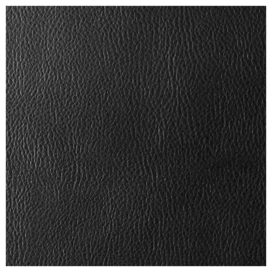 Stof van stevig zwart materiaal met lederlook. 140 cm breed.