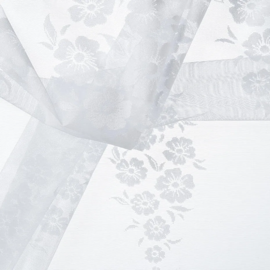 Stof Rowen Wit is een licht doorlatende stof met een geborduurd bloemen patroon. De stof is gemaakt van 100% Polyester. Polyester is een synthetische vezel met veel praktische als duurzame eigenschappen. De stof is dan ook behoorlijk slijtvast en krimpt, kreukt of vervormt niet snel. Deze stof is per meter verkrijgbaar en geschikt voor het maken van gordijnen, kleding, kussens, dekbedovertrekken en nog veel meer.