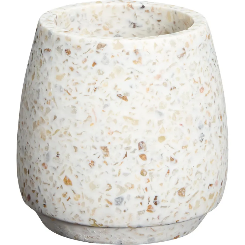 De sfeervolle tandenborstelhouder Terazzo heeft een elegante off-white kleur.Deze stijlvolle beker, gemaakt van 100% hars (polyresin), voegtklasse toe aan jouw badkamer.Perfect voor dagelijks gebruik en een prachtige decoratieve aanvulling.Kies voor de deze tandenborstelhouder en geniet van zowel functionaliteit als esthetiek in jouw interieur.