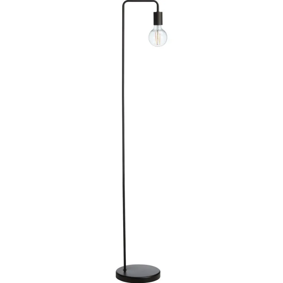 Moderne vloerklamp van zwart metaal. 141 cm hoog. Energieklasse A++. E27 fitting.