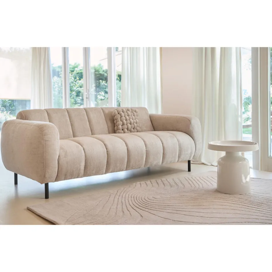 Bank Ruvo is een comfortabele bank met een eigentijdse uitstraling. De zand kleur geeft de bank een trendy en warme look. Deze 2,5-zits bank heeft een afmeting van 205x96x75 (lxbxh) centimeter.