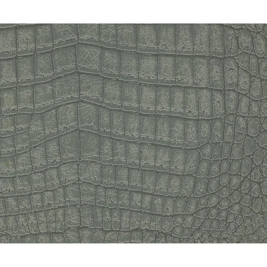 Vliesbehang met groen alligator dessin en voelbare structuur. Goed afwasbaar. Voorzien van het FSC-keurmerk. Plakken met Perfax Roll-On. 10 meter per rol.