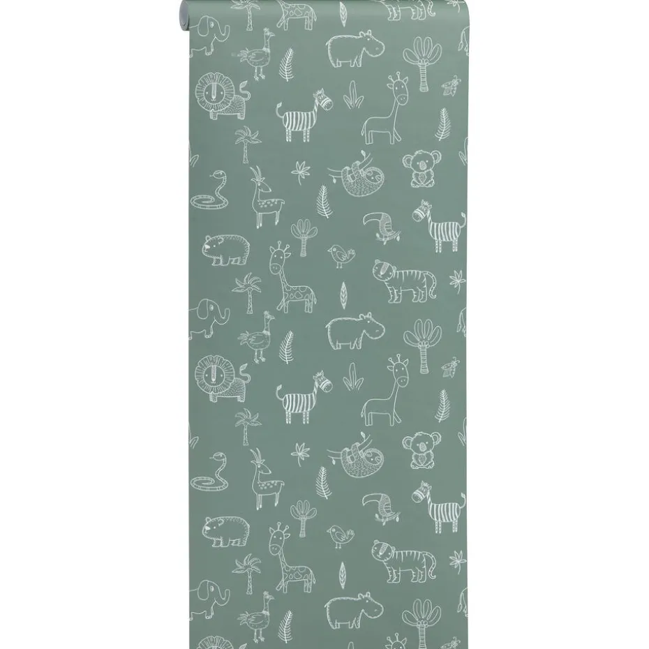 Vliesbehang Veerle in sfeervolle groene kleur met een prachtig dieren patroon.Het behang is voorzien van het FSC-keurmerk. Plakken met Perfax Pink. 10 meter per rol.