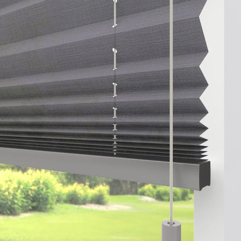 Transparante enkele plissé grijs gemêleerd met structuur. Verkrijgbaar als top down, top down bottom up of top down bottom up gespannen. Een top down bottom up gordijn kan zowel aan de bovenkant als de onderkant worden uitgevouwen voor volledige controle over de gewenste lichtinval en privacy. Een gespannen plissé is zeer geschikt voor draaikiepramen omdat de stof goed op zijn plek blijft. Op maat te maken en volledig naar wens samen te stellen. Bepaal zelf de kleur van het systeem en kies uit een bijpassende koordhanger van kunststof, rvs of zwart metaal.