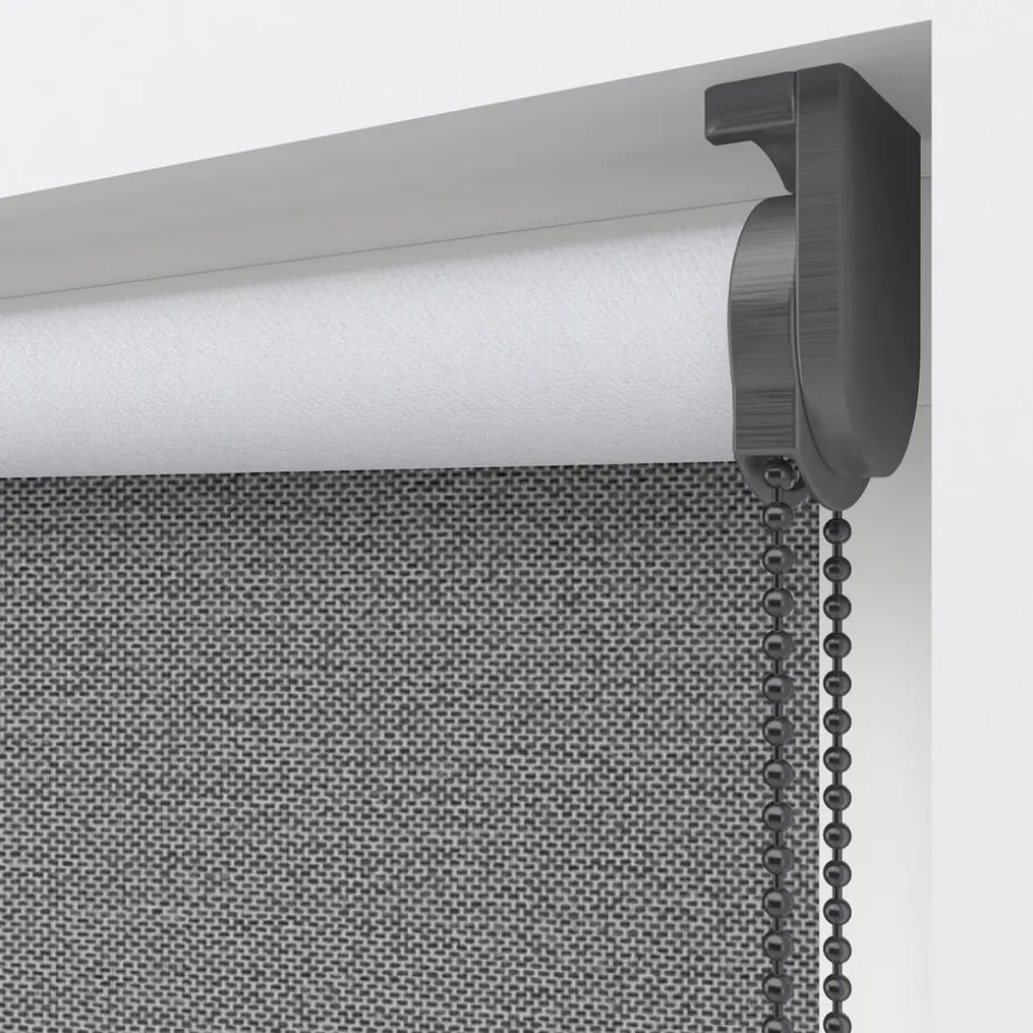 Verduisterend rolgordijn grijs/wit gemêleerd. De witte achterzijde zorgt voor volledige verduistering. Ideaal voor slaapkamers maar ook te gebruiken voor keukens en andere woonruimtes. Op maat te maken en volledig naar wens samen te stellen met een ruime keuze uit accessoires en uitvoeringen. Elektrische bediening en zijgeleiding is mogelijk. Ook geschikt voor draaikiepramen. Eenvoudig met een vochtige doek af te nemen.