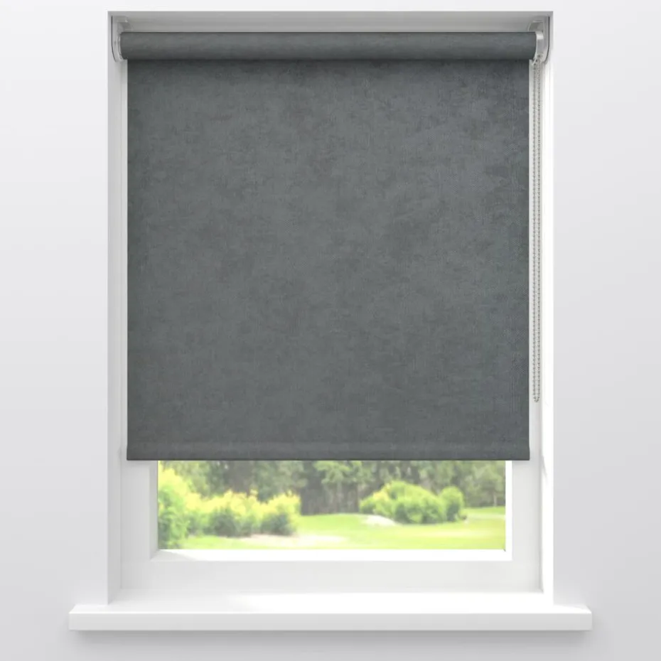 Verduisterend rolgordijn Gus Grijs in velours met een subtiele structuur. De meekleurende achterzijde zorgt voor volledige verduistering. Ideaal voor slaapkamers maar ook te gebruiken voor keukens en andere woonruimtes. Op maat te maken en volledig naar wens samen te stellen met een ruime keuze uit accessoires en uitvoeringen. Elektrische bediening en zijgeleiding is mogelijk. Ook geschikt voor draaikiepramen. Eenvoudig met een vochtige doek af te nemen..