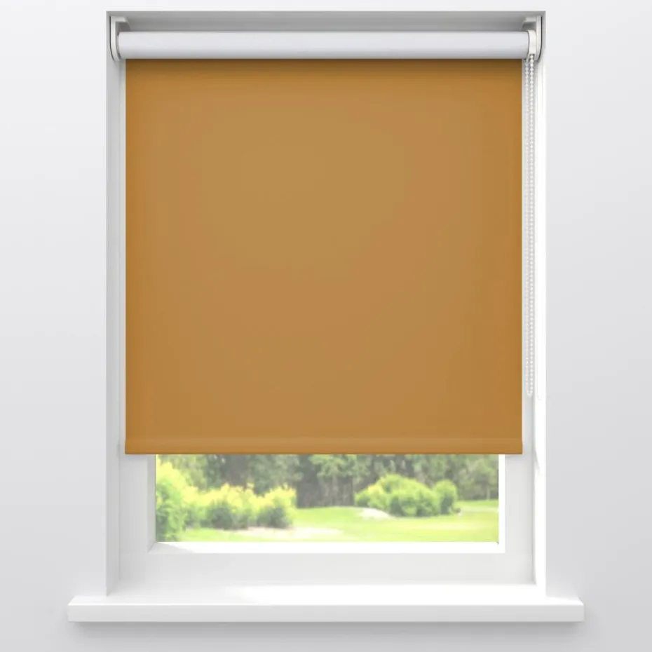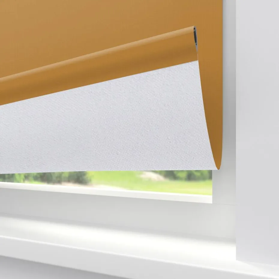 Verduisterend rolgordijn okerkleurig. De witte achterzijde zorgt voor volledige verduistering. Ideaal voor slaapkamers maar ook te gebruiken voor keukens en andere woonruimtes. De stof kan tot 350 cm extra breed worden gemaakt en is geschikt voor grote ramen. Op maat te maken en volledig naar wens samen te stellen met een ruime keuze uit accessoires en uitvoeringen. Elektrische bediening en zijgeleiding is mogelijk. Ook geschikt voor draaikiepramen. Eenvoudig met een vochtige doek af te nemen.