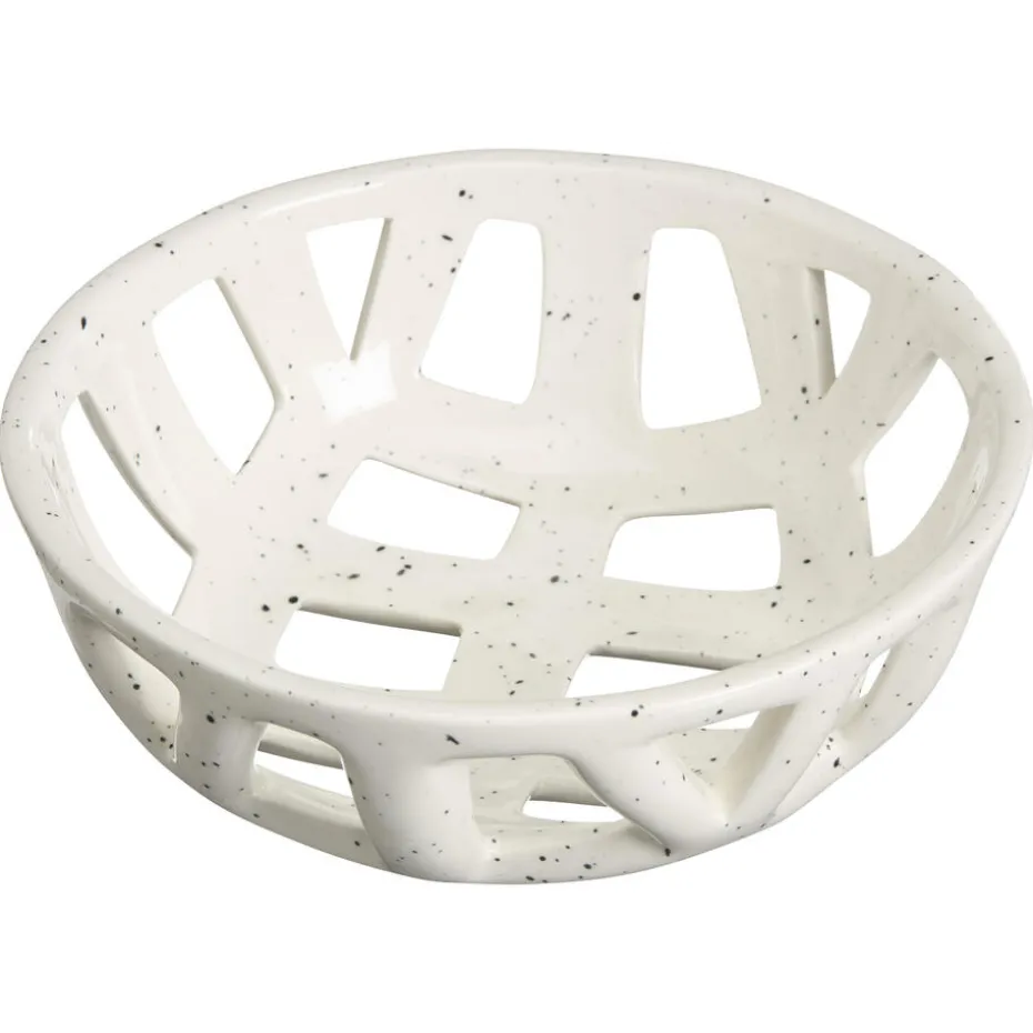 Deze prachtige Limes fruitschaal is een eyecatcher in elke keuken. Deze wit gespikkelde fruitschaal van hoogwaardig aardewerk (stoneware) is zowel stijlvol als functioneel. Perfect voor op de eettafel en in de keuken, het biedt een elegant display voor je fruit. Als veelzijdig keukenaccessoire voegt het klasse toe aan je interieur.