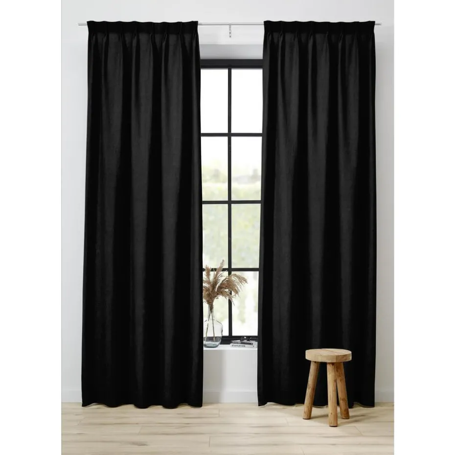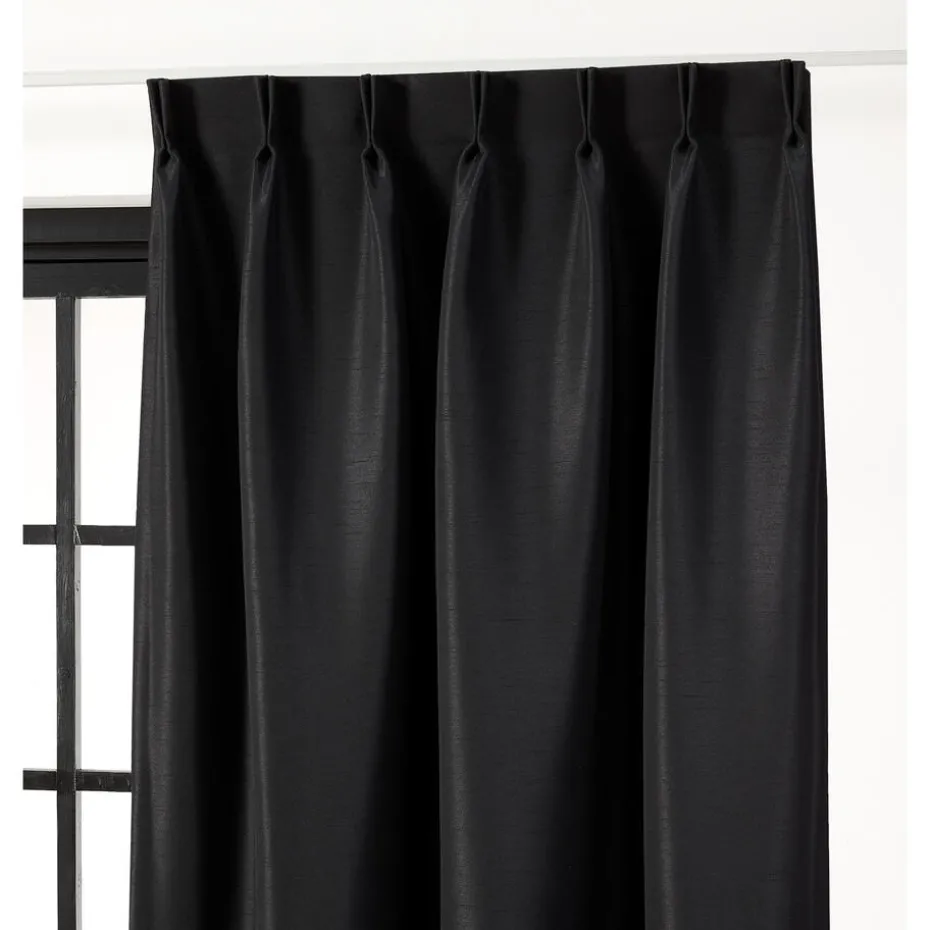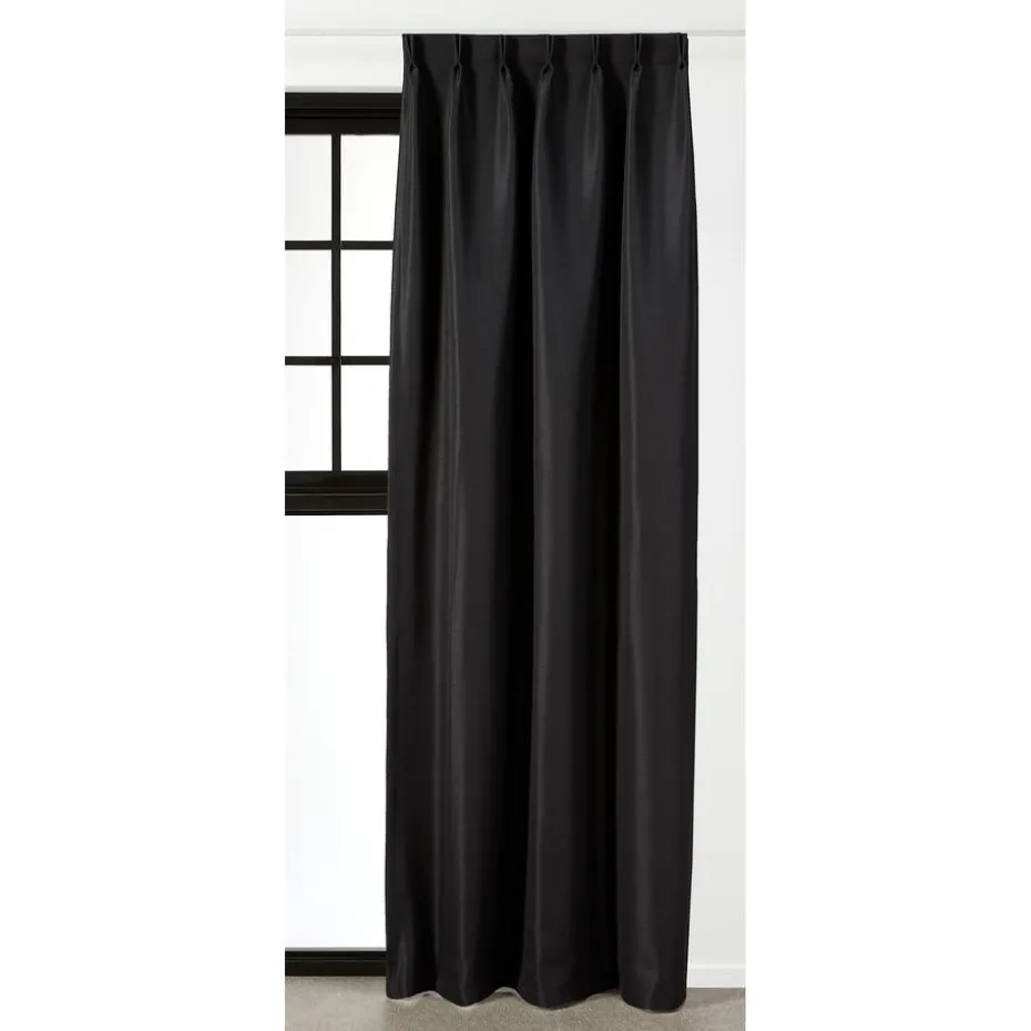 Verduisterende gordijnstof zwart. De glanzende soepelvallende stof zorgt voor een luxe uitstraling. Stevig, vormvast, slijtvast. Deze dim-out gordijnstof is tot 95% verduisterend. De stof laat weinig daglicht door maar houdt niet het volledige zonlicht tegen.