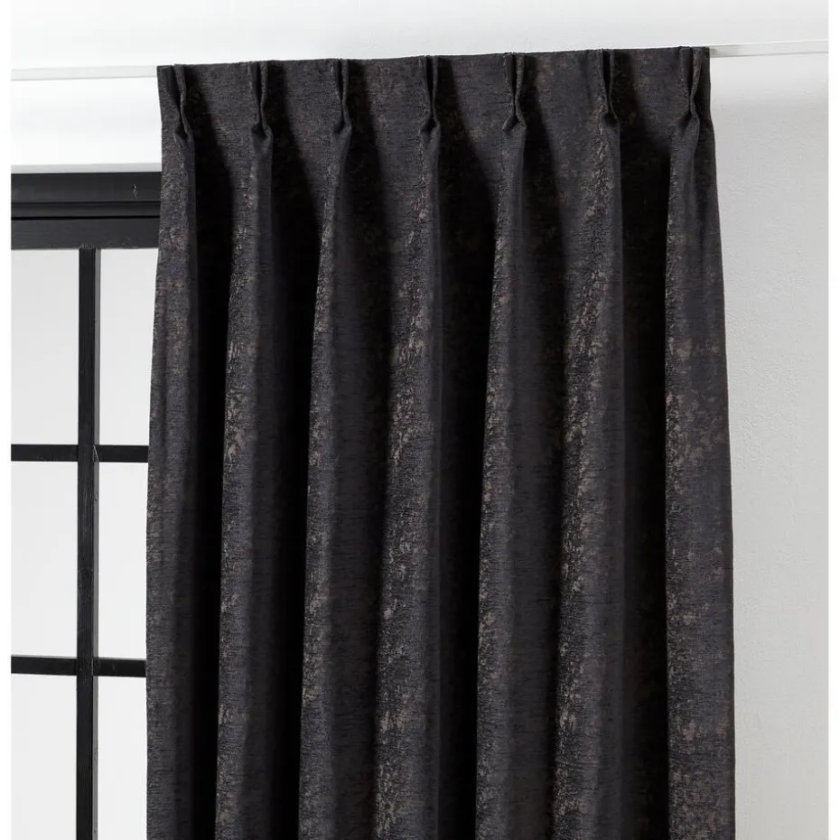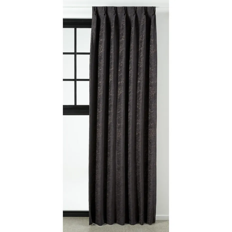 Lichtdoorlatende antracietkleurige gordijnstof. De geweven structuur en de glans zorgen voor een luxe en volle uitstraling. Stevig, vormvast en soepel. Het weef/drukstof zorgt ervoor dat er geen luchtstroom door het materiaal mogelijk is en hierdoor heeft het een perfect isolerende werking. Het houd koude lucht buiten en warme lucht binnen. Deze gordijnstof wordt warmer dan glas, zodat het binnen met gesloten gordijnen lekker behaaglijk aanvoelt. Hierdoor ontstaat er ook minder tocht. Door te kiezen voor een dikke stof (o.a. Sandra, Muck, Romeo, Benji, Jasmijn, Muck, Lou of Cloé), kan de verwarming mogelijk een graadje lager. Laat de verwarming vrij bij het hangen van gordijnen, dit zorgt ervoor dat de opstijgende warmte niet tussen het gordijn en het raam terecht komt. Het is handig als je gordijn op de vensterbank eindigt. Daarnaast kun je ook denken aan een combinatie tussen plisségordijnen en een overgordijn voor een extra isolerende werking.