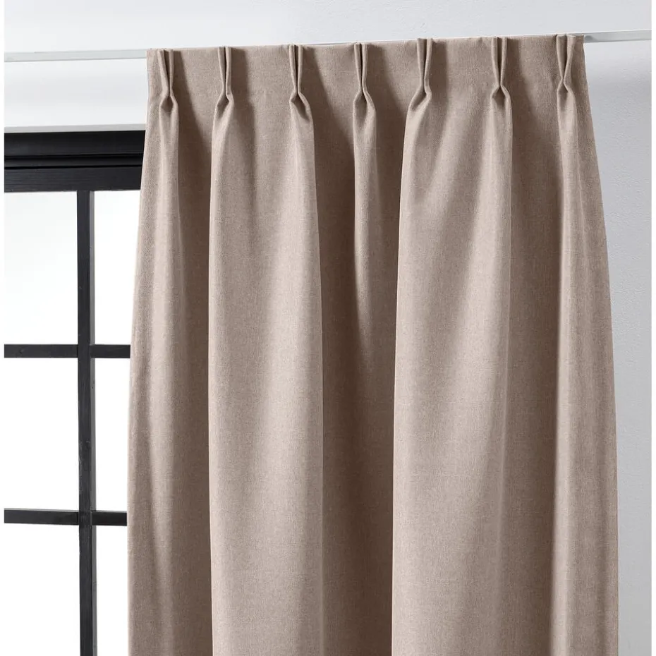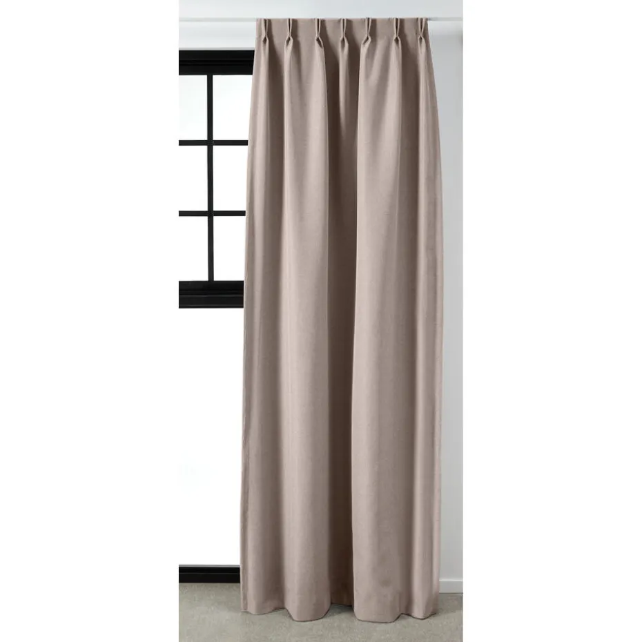 Verduisterende geweven gordijnstof bruin met linnenlook. Stevig, vormvast, slijtvast en kleurvast. Deze soepelvallende, geweven dim-out gordijnstof is tot 80% verduisterend. De stof laat weinig daglicht door maar houdt niet het volledige zonlicht tegen. 148 cm breed.