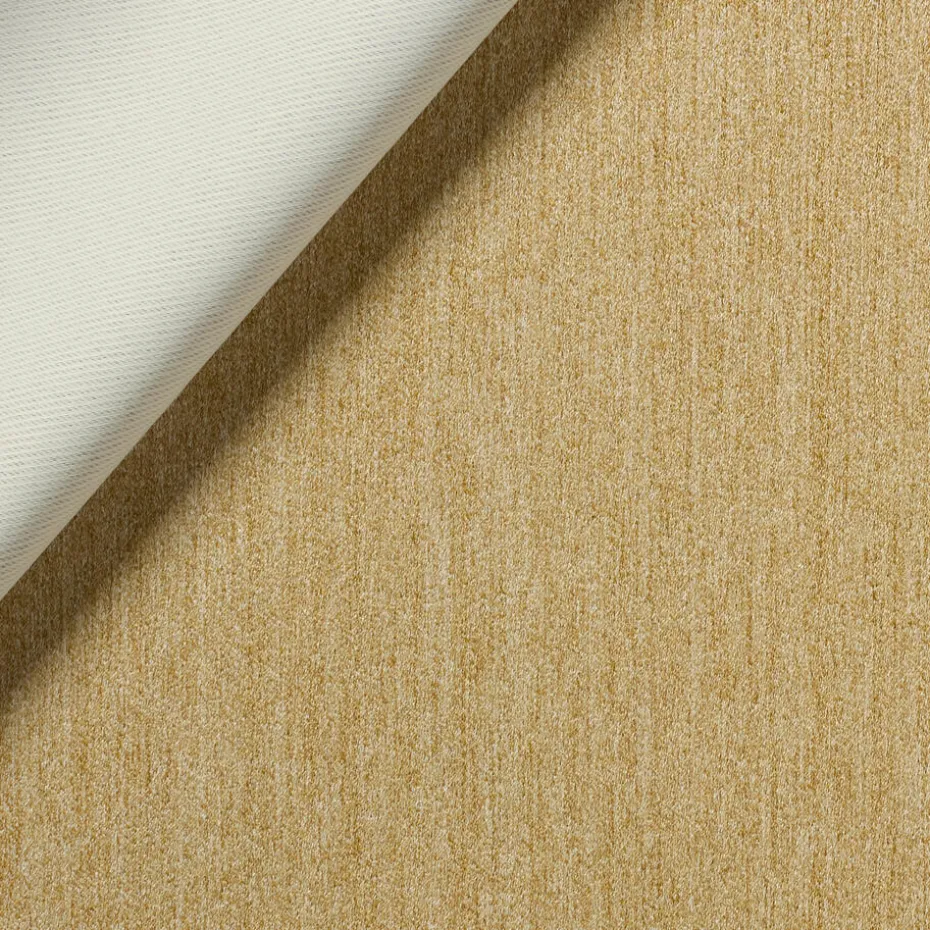 Gordijn Levi geel is een soepel vallende stof, die is gemaakt van 100% polyester en de achterkant is voorzien van een coating die zorgt voor een dimout. Dit maakt dat de stof niet volledig verduisterd, maar wel zorgt voor een behoorlijke verduistering.