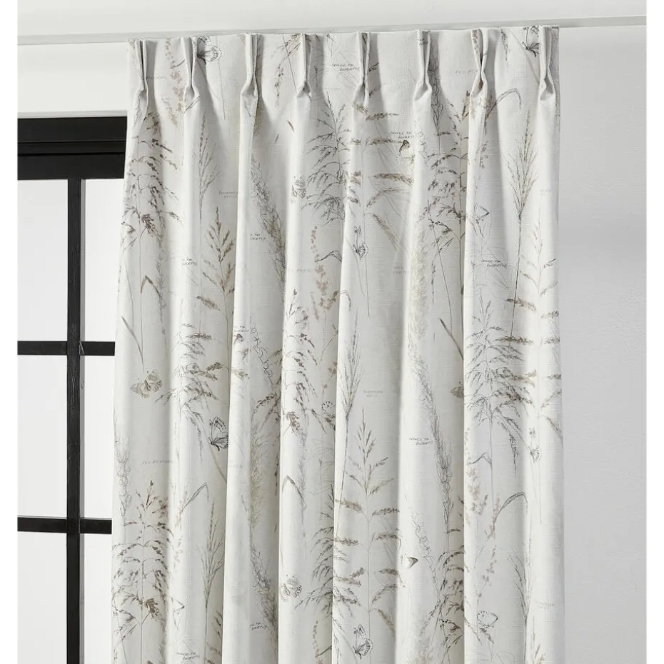 Gordijn Marian in een off-white kleur. Dit gordijn heeft een print van verschillende bladeren. De stof is gemaakt van 100% polyester. Het patroonhoogte is 67 centimeter. 145 centimeter breed.