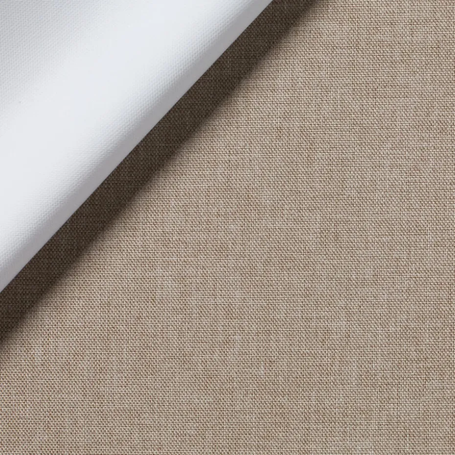 Gordijn Nina is in een warme bruine kleur. De stof is gemaakt van 100% polyester en heeft een compleet verduisterend effect, dit omdat de achterkant van de stof voorzien is van een witte blackout coating.