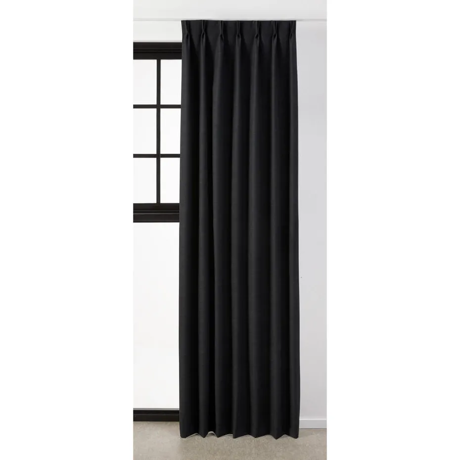 Verduisterende gordijnstof Toby in de kleur zwart is stijlvol en van uitstekende kwaliteit. Ben jij op zoek naar een prachtige verduisterende gordijnstof voor in de woonkamer, of juist voor in de slaapkamer? Met gordijnstof Toby kan het allemaal Stevig, vormvast en slijtvast. Dit black-out gordijn is aan de achterkant voorzien van een coating die ervoor zorgt dat dit gordijn 100% verduisterend is. Deze coating zorgt dat er geen licht door de stof komt. Daarom is de achterkant meestal wit en de voorkant is de gewone gordijnstof. Een black-out gordijn voelt wat stugger aan. Deze gordijnstof houdt, in tegenstelling tot dim-outs 100% het zonlicht tegen. Bij de confectie van deze kwaliteit kunnen kleine gaatjes ontstaan. Dit is inherent aan de stof en kan niet voorkomen worden. 140 cm breed.