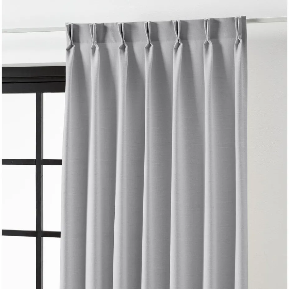 Gordijnstof lichtgrijs. Soepelvallend, stevig en kreukherstellend. 146 cm breed.