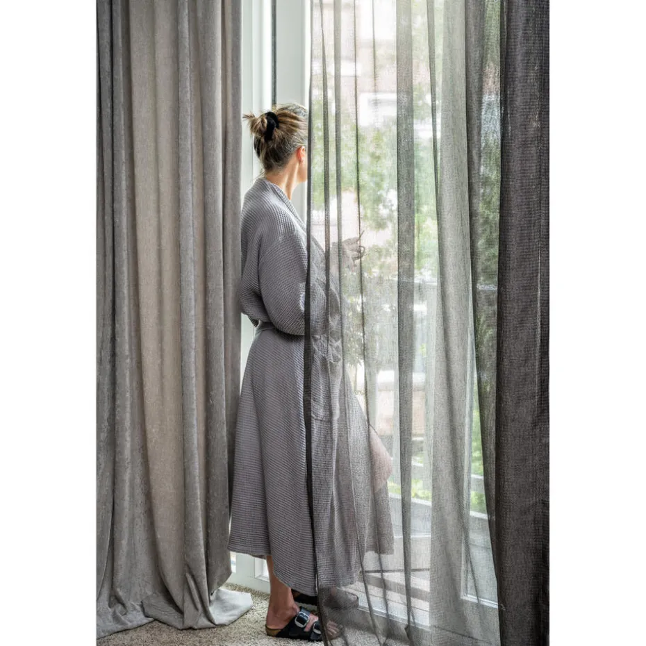 Transparante gordijnstof antracietkleurig. De lichtglanze stof heeft een subtiel opengewerkte structuur en een luxe uitstraling. Stevig, vormvast en soepel. Goed te combineren met een waveplooi maakwijze. 300 cm.