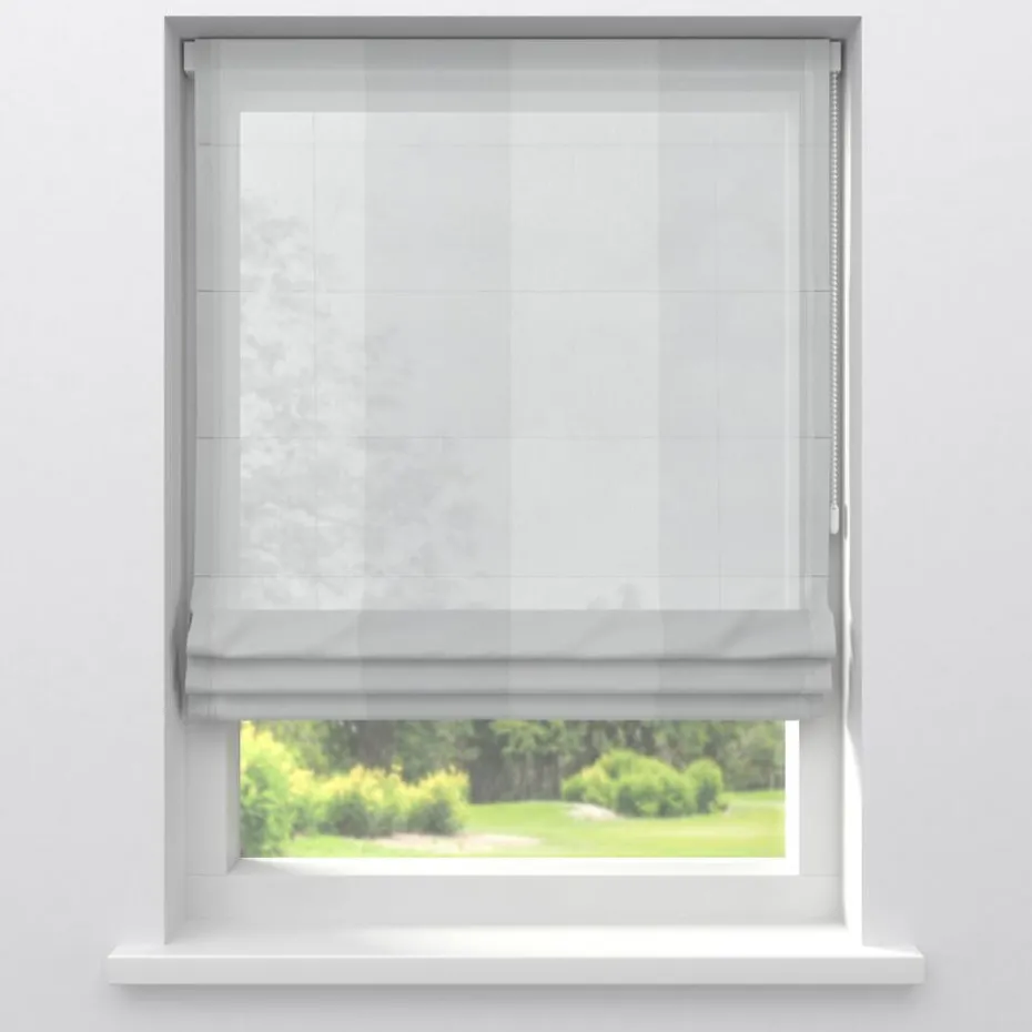 Inbetween van een soepele off-white stof met verticale strepen. Vormvast. 300 cm hoog.