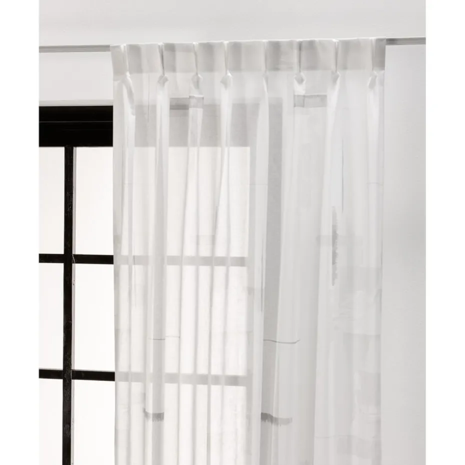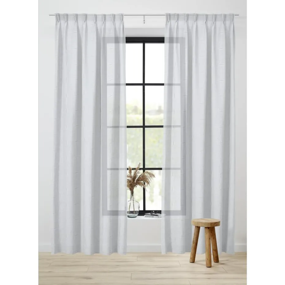 Inbetween van soepele witte stof met subtiel dessin. Vormvast. 298 cm hoog.