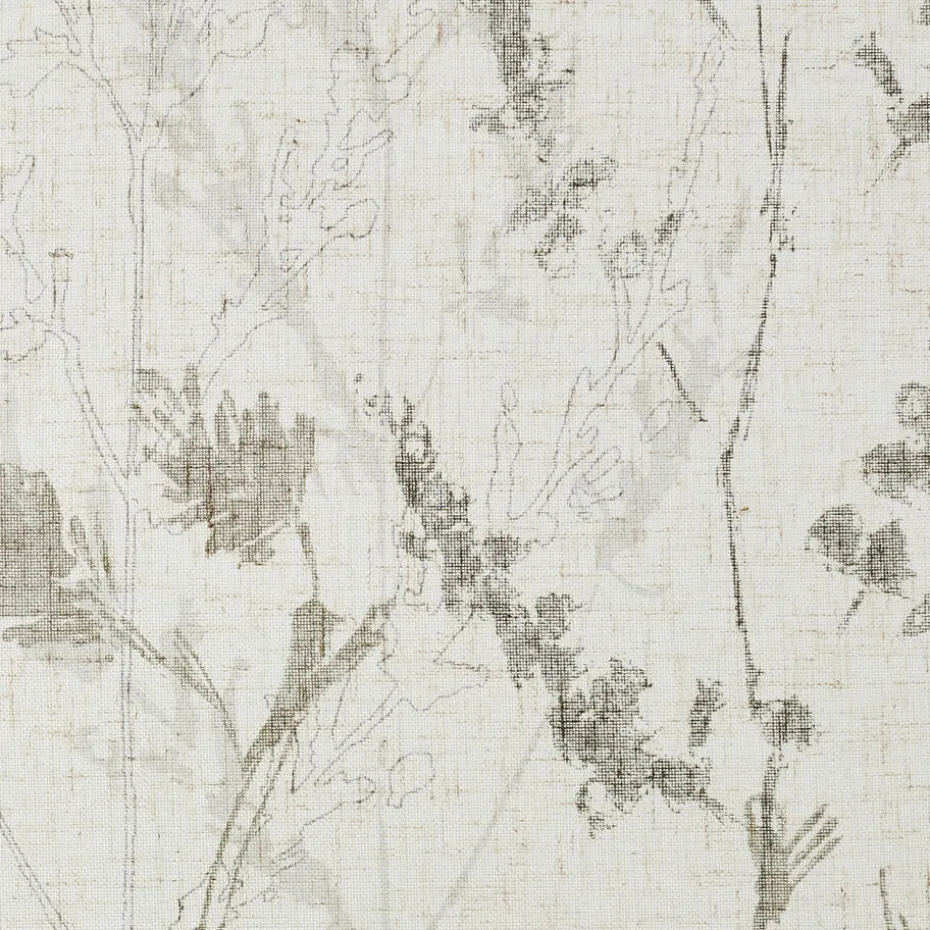 Transparante gordijnstof met botanische print, natuurlijke uitstraling en linnenlook (15% linnen). Soepelvallend. 300 cm.