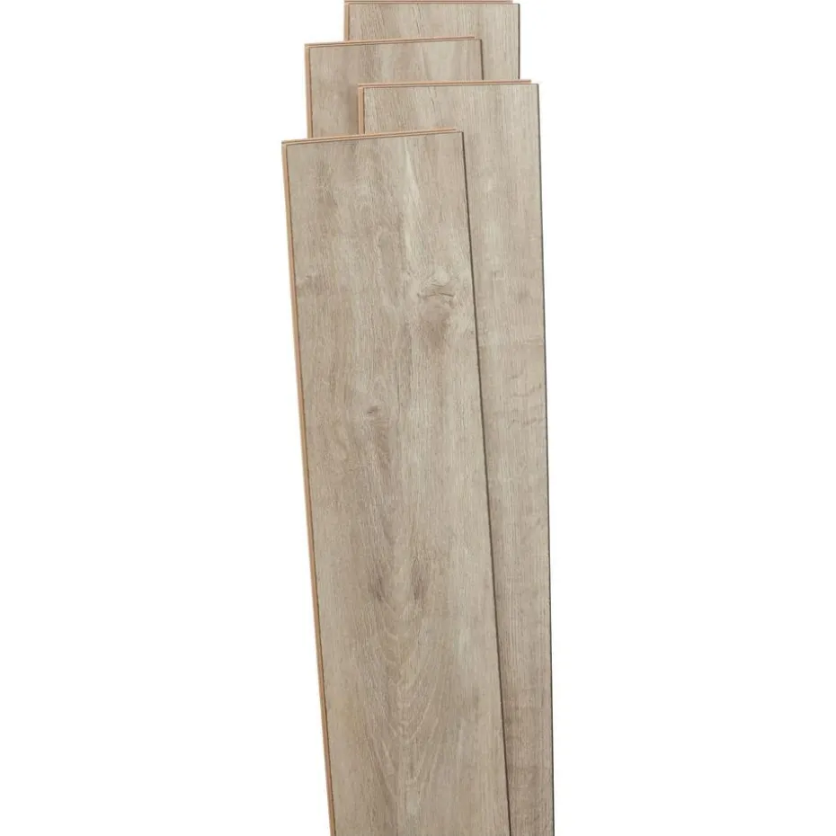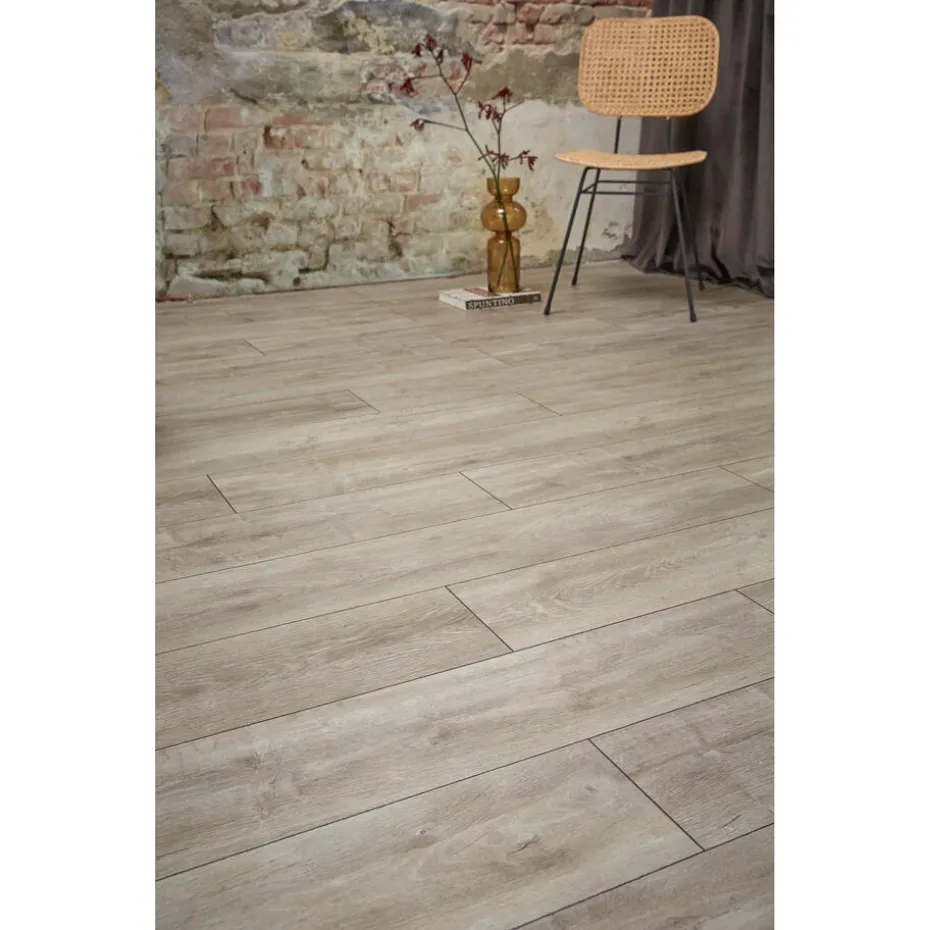 Laminaat grijs eiken en een 4-zijdige V-groef. Voorzien van het PEFC keurmerk. 8 mm dik.