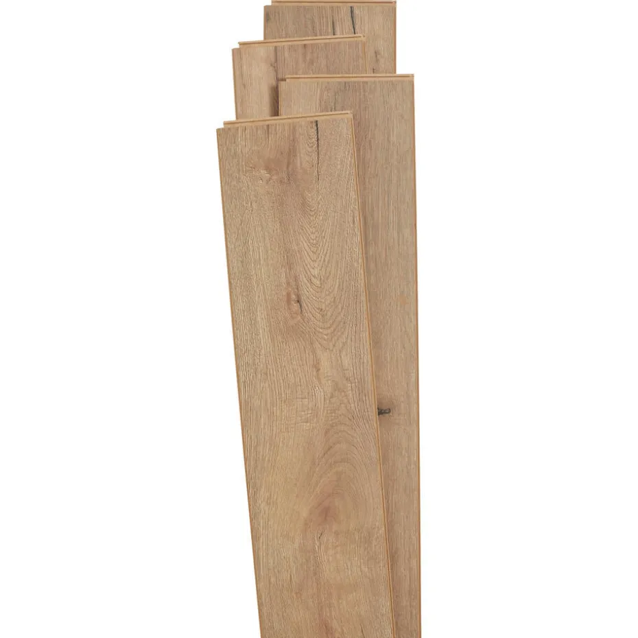 Laminaat Powell Eiken met een dikte van 7 millimeter. Geschikt voor normaal woongebruik.