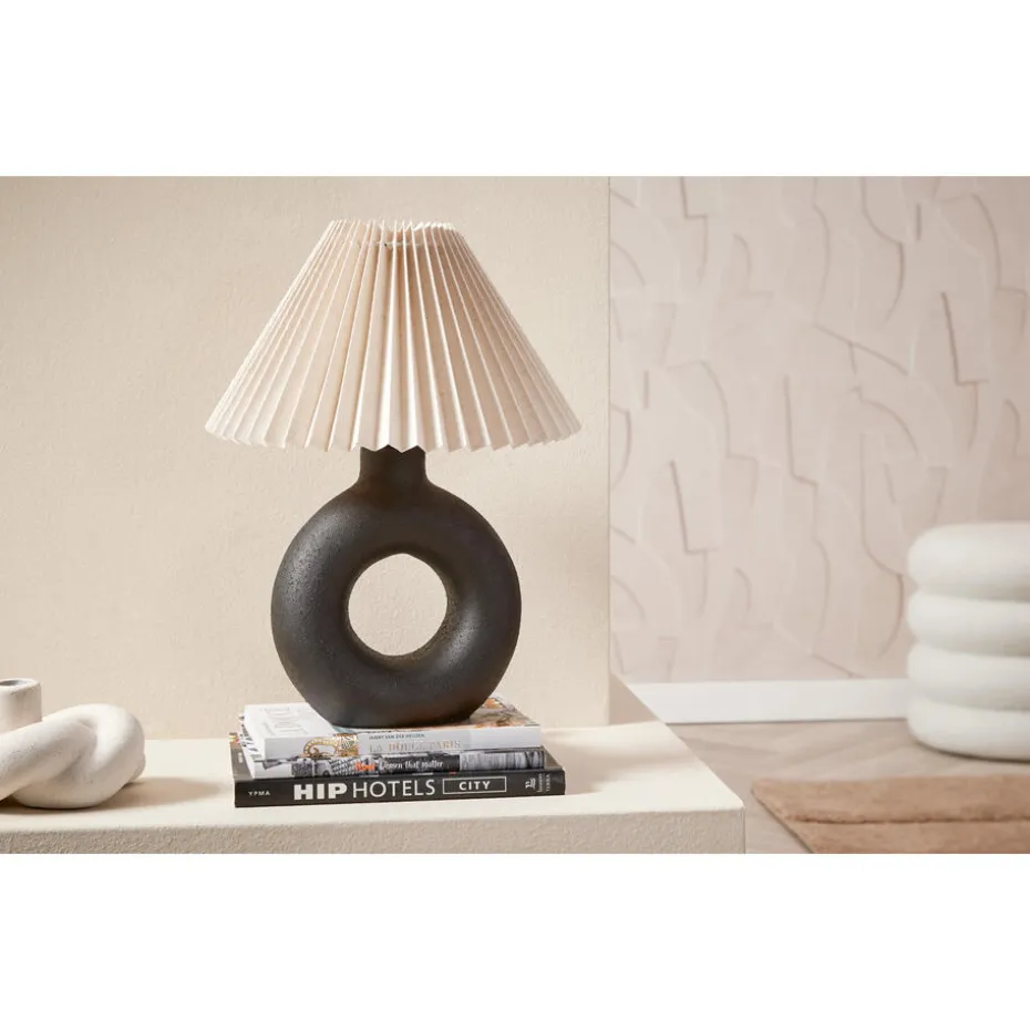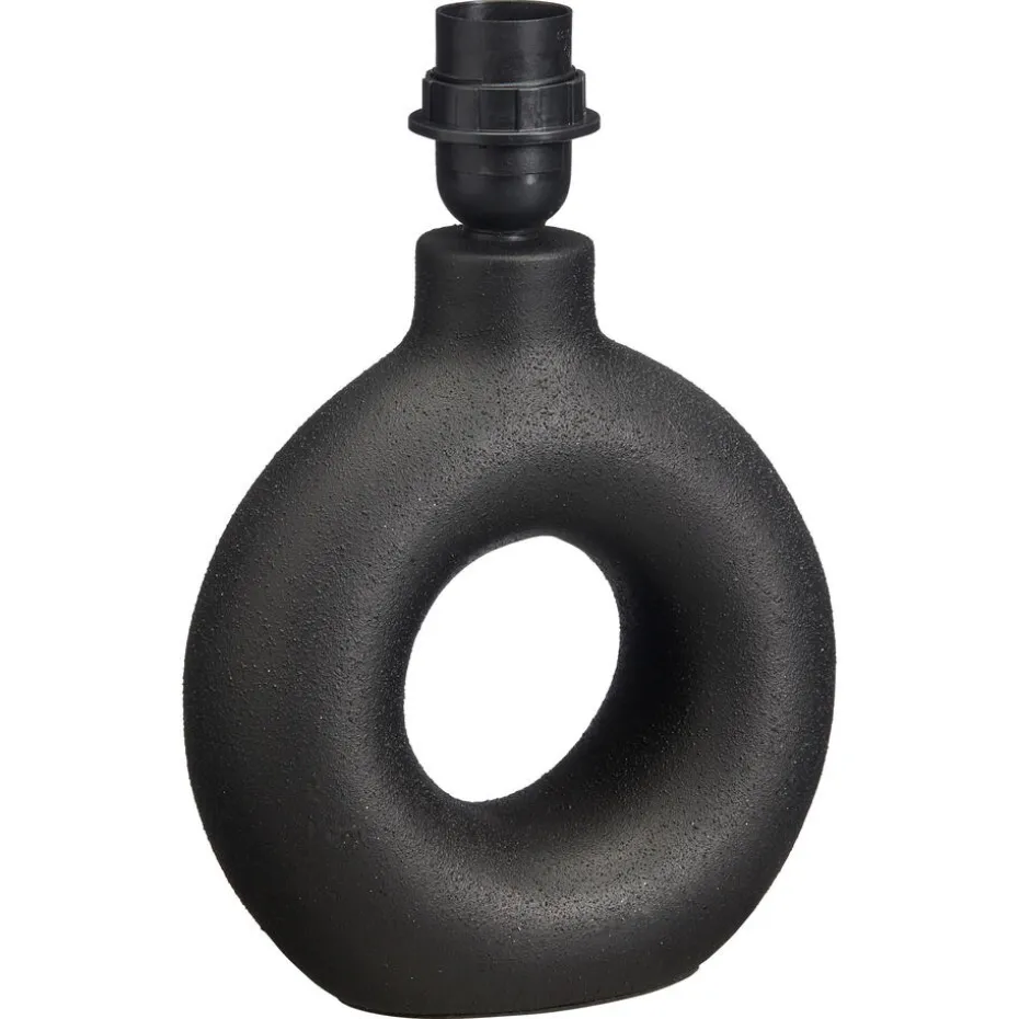 De zwarte lampvoet is gemaakt van 100% keramiek met een voelbare structuur. Het voordeel van keramiek is dat het heel lang mee gaat en veel sfeer brengt in huis. De lampvoet heeft een afmeting van 9×19,5×27 cm waardoor hij perfect past op een bijzettafeltje of nachtkastje. De cirkel lampvoet heeft een E27 fitting wat je de vrijheid geeft om een lichtbron naar keuze toe te voegen.